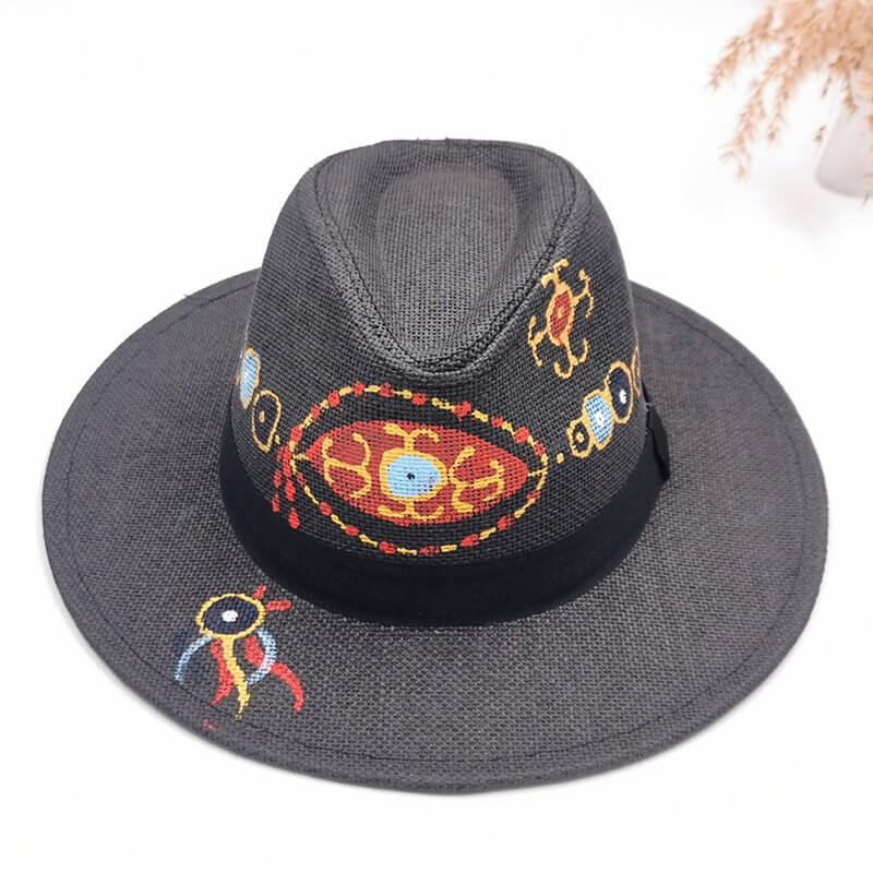 - Fügen Sie einzigartige Design Handzeichnung auf dieser Handwebstrohhut hinzu