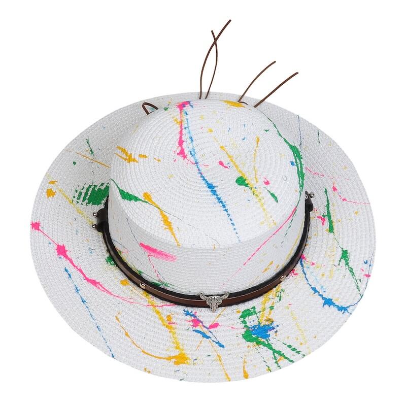 Handfarbe Zeichnung Strohhut Custom Art Design Hand gemacht 100% Boho