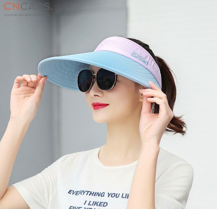 This Lady summer sun visor constructed of polyester cool dry fabric and inside with metal band, the wholesales sun visor features a good-looking classic design in summer and a color matching or contrast visor crown. You can get your own brand printed on embroidered to be noticed in crowd.