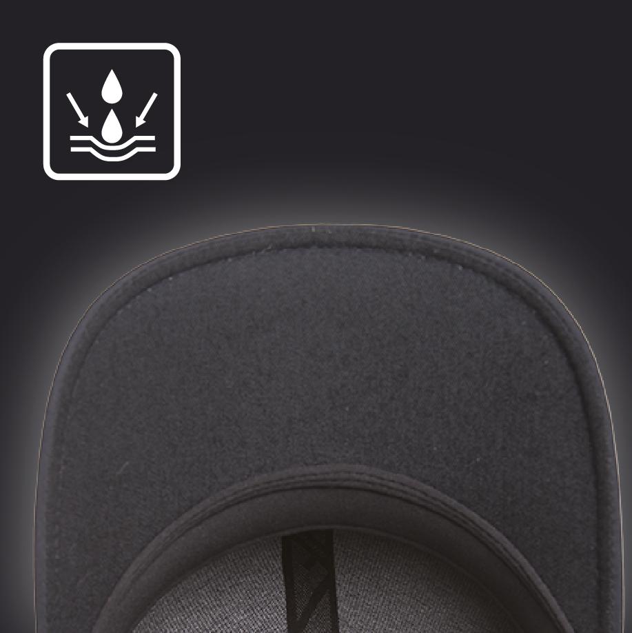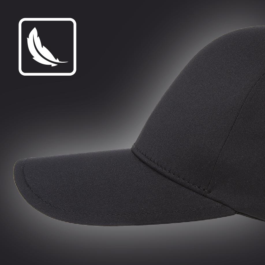 paneles sin costuras 92% poliéster, 8% spandex; 6-panel, paneles delanteros con respaldo de buckram duro estructurado, perfil medio; 3-1/2Corona de pulgadas; ojalete cortado con láser; La banda de sudor de spandex retiene la forma; 3 La banda de sudor de la capa previene la mancha, cervecería de humedad, cojín de nubes para la comodidad; La grabación interna se regula térmica
