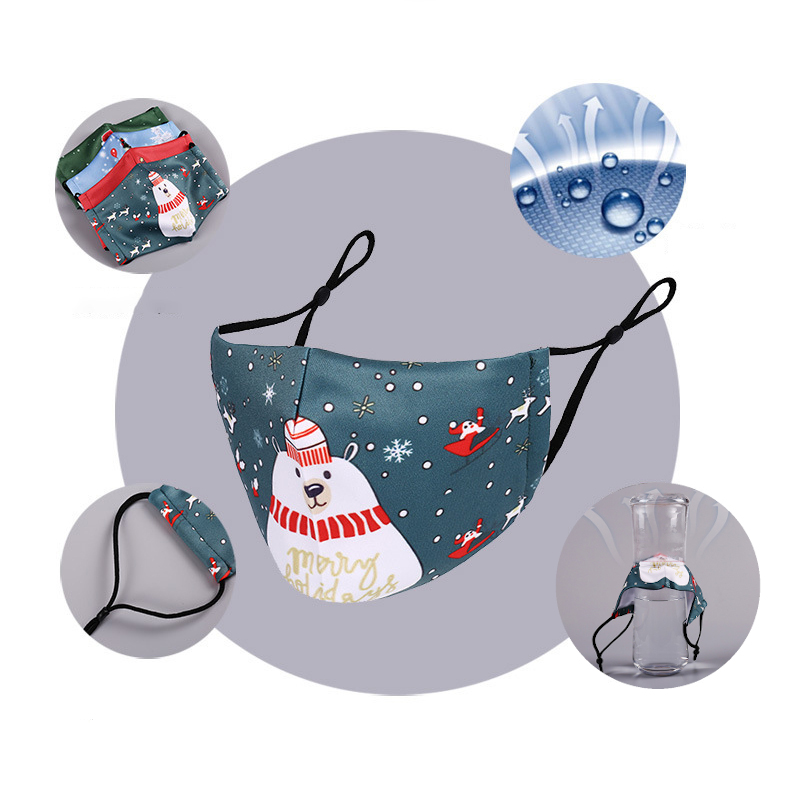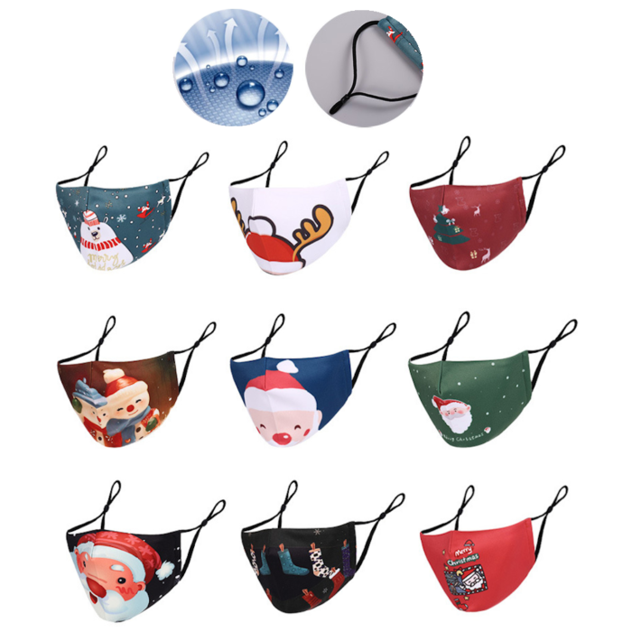 Masque facial de Noël, anti-poussière, lavable, anti-brume, respirant, filtre à guêtre réutilisable
