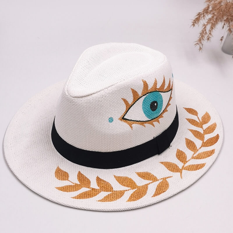 Peinture à la main dessin chapeau de paille personnalisé Art Design fait à la main 100% Bohème