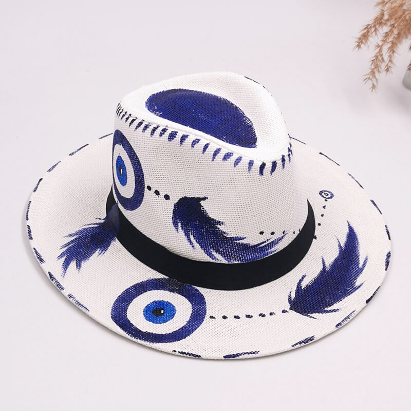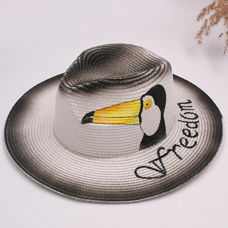 - Aggiungi un unico disegno a mano di design su questo cappello di paglia con tessitura a mano
