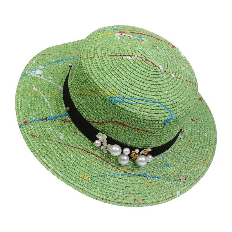 Straw Hat Ink Spot Pattern Hand Painting Sun Protection Bohemian Outdoor bule with pearls Straw Hat Ink Spot Pattern Hand Painting Sun Protection Bohemian Outdoor grass green Straw Hats Ink Spot Pattern Sun Protection Bohemian Outdoor Hand Painting