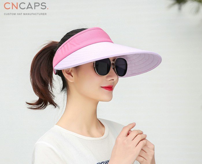 This Lady summer sun visor constructed of polyester cool dry fabric and inside with metal band, the wholesales sun visor features a good-looking classic design in summer and a color matching or contrast visor crown. You can get your own brand printed on embroidered to be noticed in crowd.