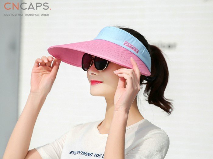 This Lady summer sun visor constructed of polyester cool dry fabric and inside with metal band, the wholesales sun visor features a good-looking classic design in summer and a color matching or contrast visor crown. You can get your own brand printed on embroidered to be noticed in crowd.